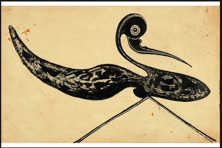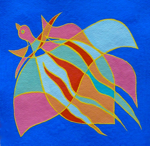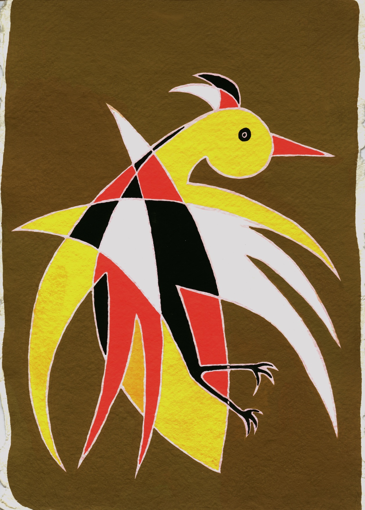 Sometimes, I similarly use a bird ‘template’, for want of a better term, but I find myself experimenting with the manner in which the lines might operate within this template. The geometric shapes then become increasingly abstract, but like Tagore, I use the beak and the wings as distinguishing characteristics, to evoke the form of a bird. You might therefore say that the identifying characteristics constitute the broad template I envision at the outset. Most often, I also add bird-like feet and an eye or two, strategically placed to intimate the avian form. Like the prana-pratishtha in an Indian temple, where the placement of eyes on an idol is believed to breathe life into it, I add the eye(s) to give the form life. Sometimes the bird is only hinted at; at other times, it is suggested more overtly. Like Tagore’s birds, mine are sometimes geometric, sometimes quite amorphous, but the beak especially, lends figuration, thus transforming both geometry and amorphousness into something that might remind us of birds. This is one reason why I find the bird form fascinating: it lends itself equally well to abstraction, to realism and to the decorative. Its adaptability therefore, is useful to those who wish to maintain plasticity in form. Here then, are a few examples of how a geometric, abstract or amorphous form might be transformed into the intimation of a bird, through the introduction of a beak, wings or even feet.