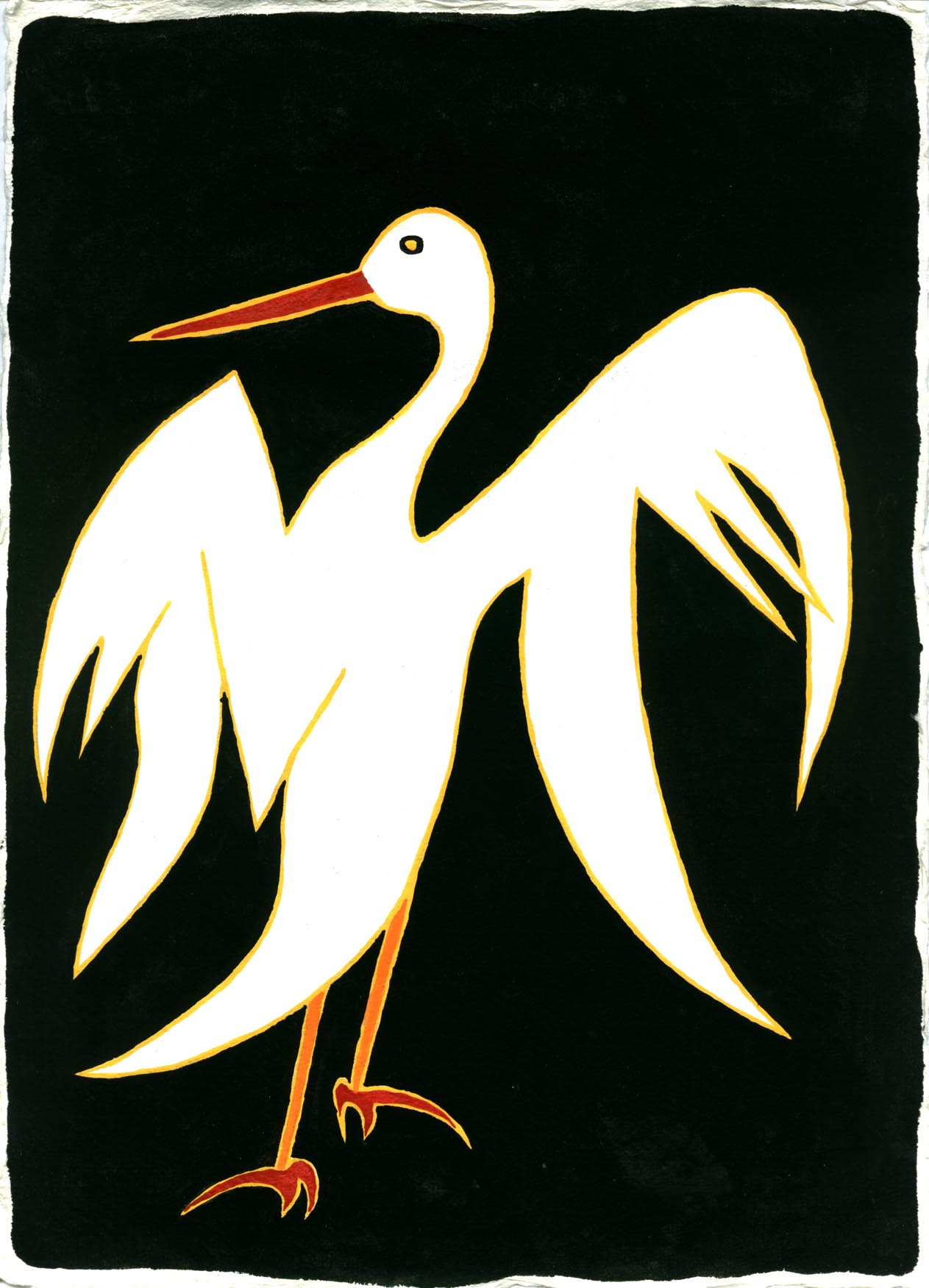 As I’ve stated in my previous blogpost, Tagore’s birds tend to be fantastical rather than real; sometimes they are even chimeric (chimera: a composite of the physical attributes of two or more kinds of animals, mythical beasts, and often humans). So what constitutes the bird form? The simple answer seems to be its constituent parts: its beak, its eyes, a head, a body, feet and a tail and additionally, what it is covered with, i.e. rather than skin or fur, birds are normally covered with feathers. Obviously, some of these parts are shared by other creatures, including humans. That is, we also have eyes, a head and feet making up our body. And of course, while we may not have tails, animals do. But neither humans nor animals have feathers, which only birds have and yet neither Tagore’s nor my paintings include anything resembling feathers. Perhaps this is because feathers lend detail, thus distracting attention from the elemental form of a bird. Put another way, feathers lend unwelcome realism to a language that leans towards abstraction.